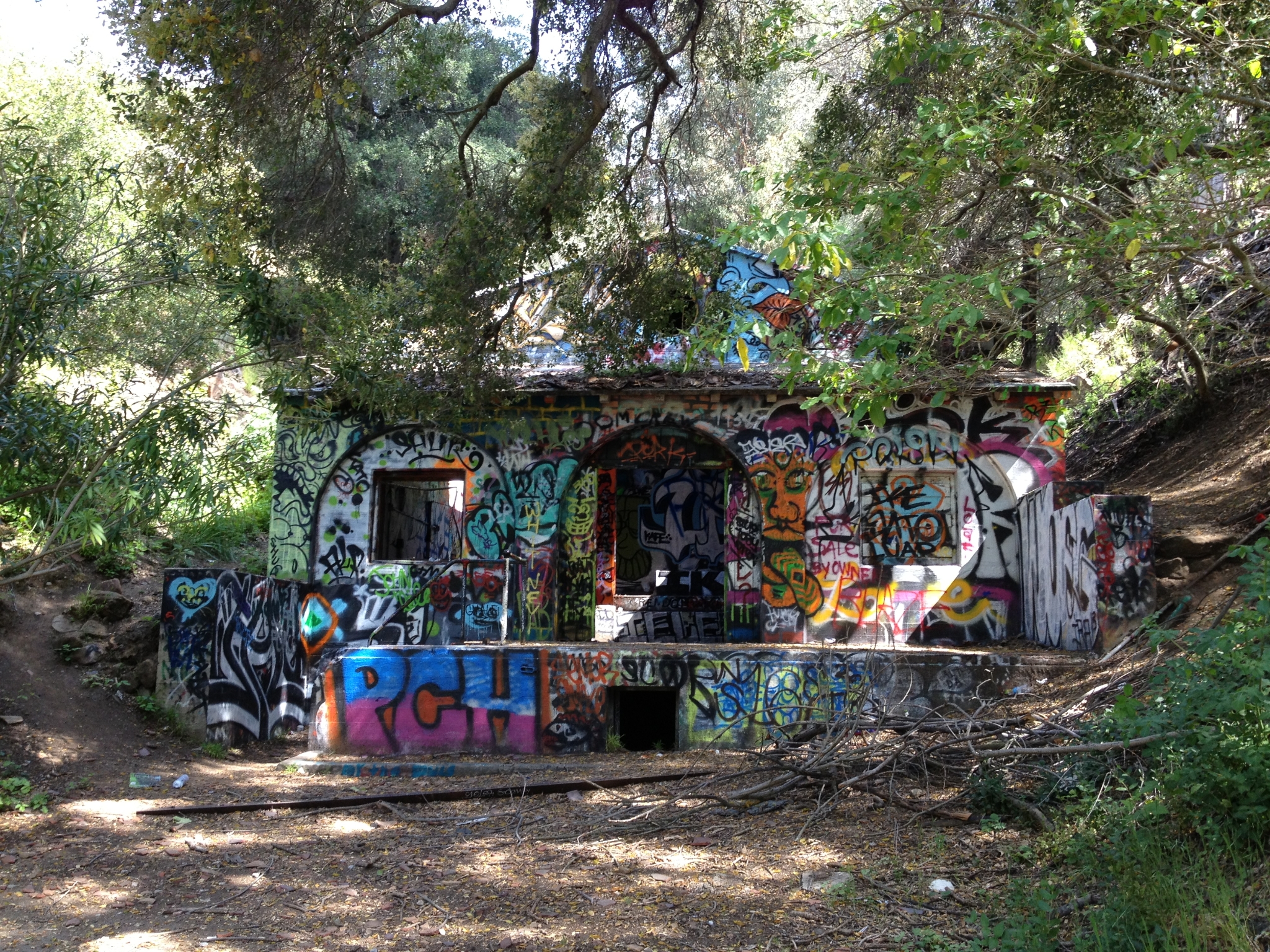 14 Coming-up to the first of many old buildings that are mentioned in the trail guides. They are covered in grafitti and are a little creepy. Evidently this was a semi-hidden Nazi compound called "Murphy's Ranch" in the 1930s and was Hitler's SoCal outpost during WWII.