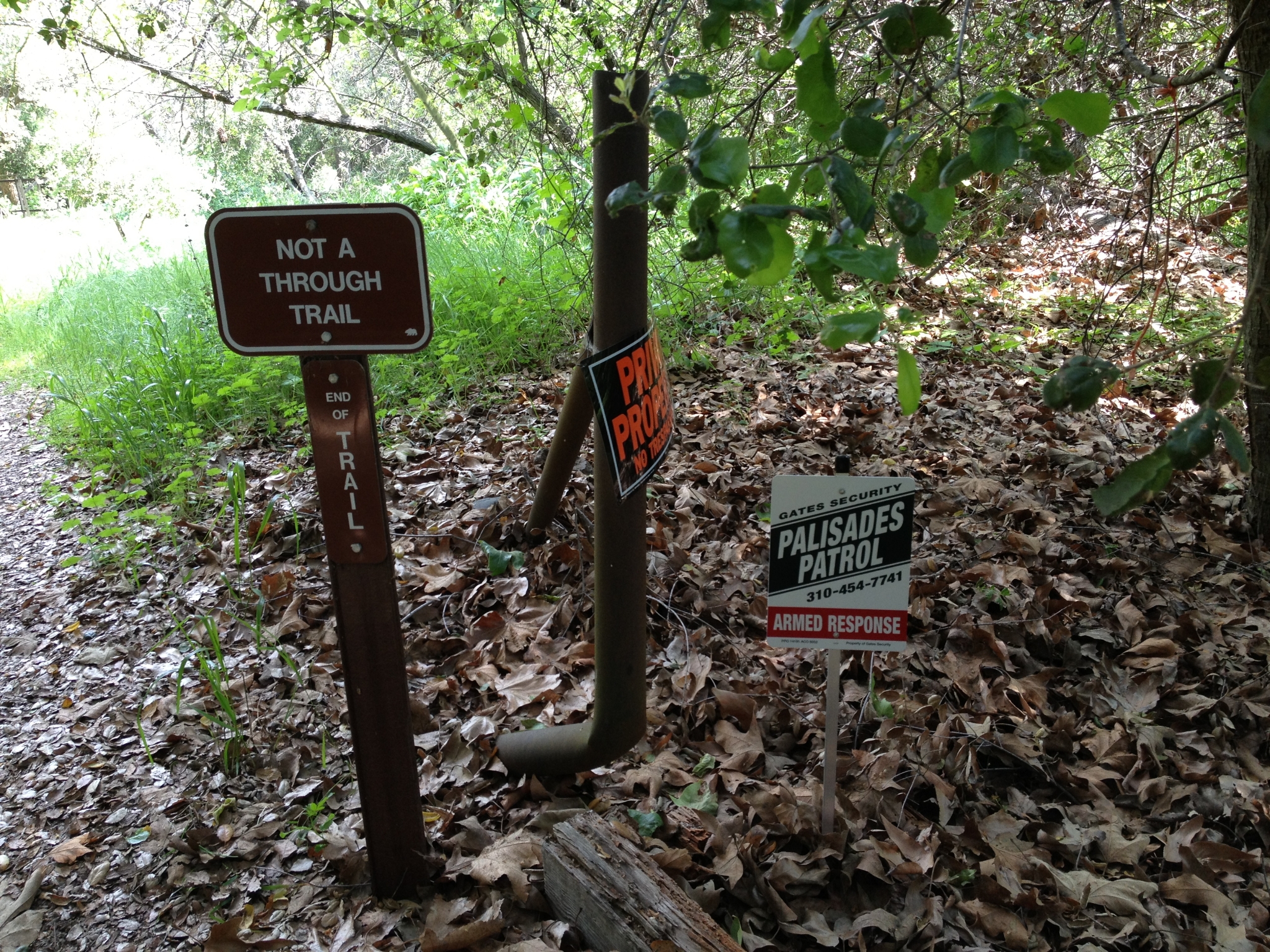 24 The Rustic Canyon trail ends at a large Boy Scout camp about halfway up the canyon. They seem pretty serious about it, and there are people in the camp, so I'm hesitant to ignore the signs.