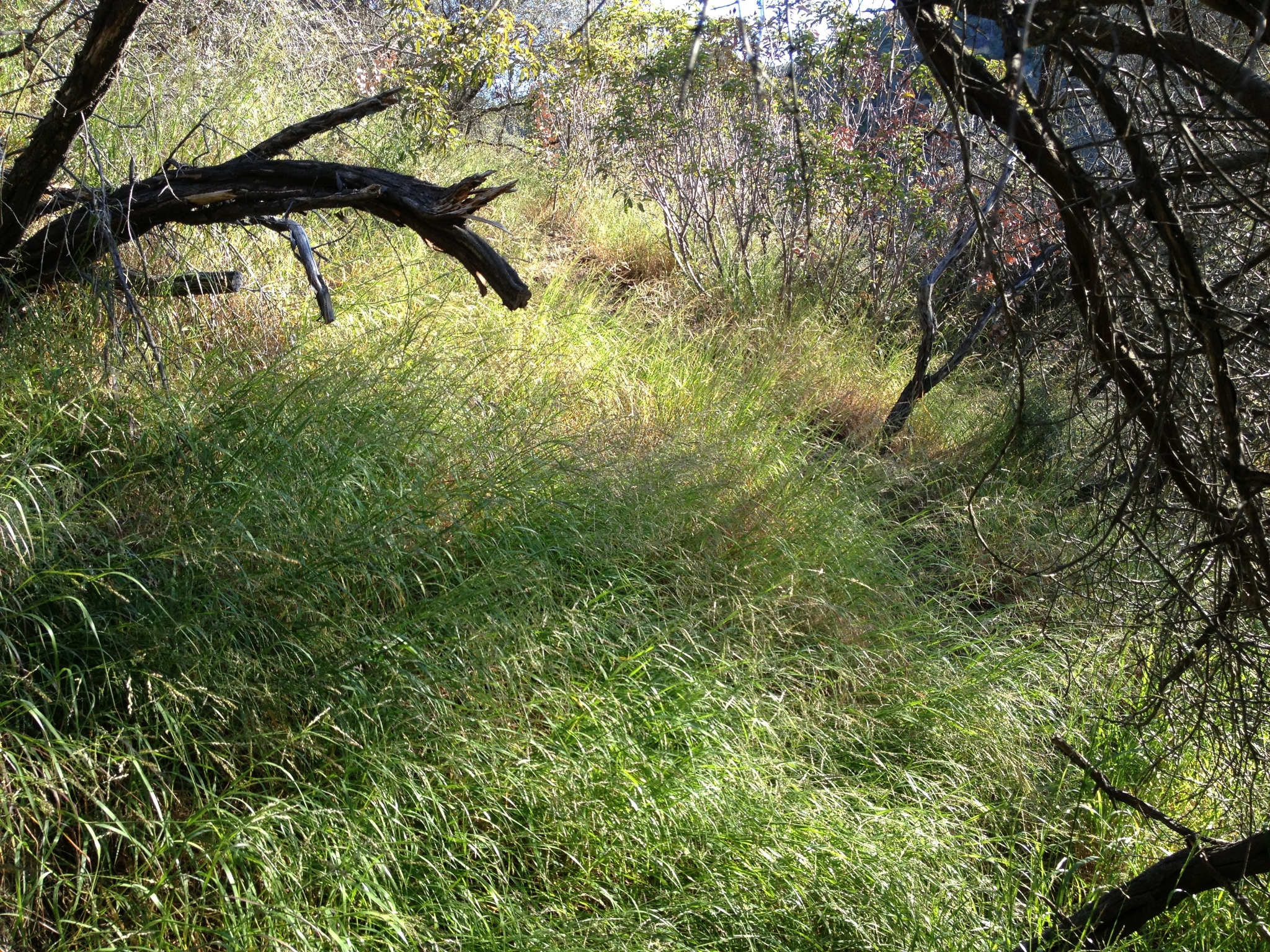 2 The "trail" looks like this in places. I always get nervous when I can't see where my feet are landing. The phrase "snake in the grass" keeps coming to mind.