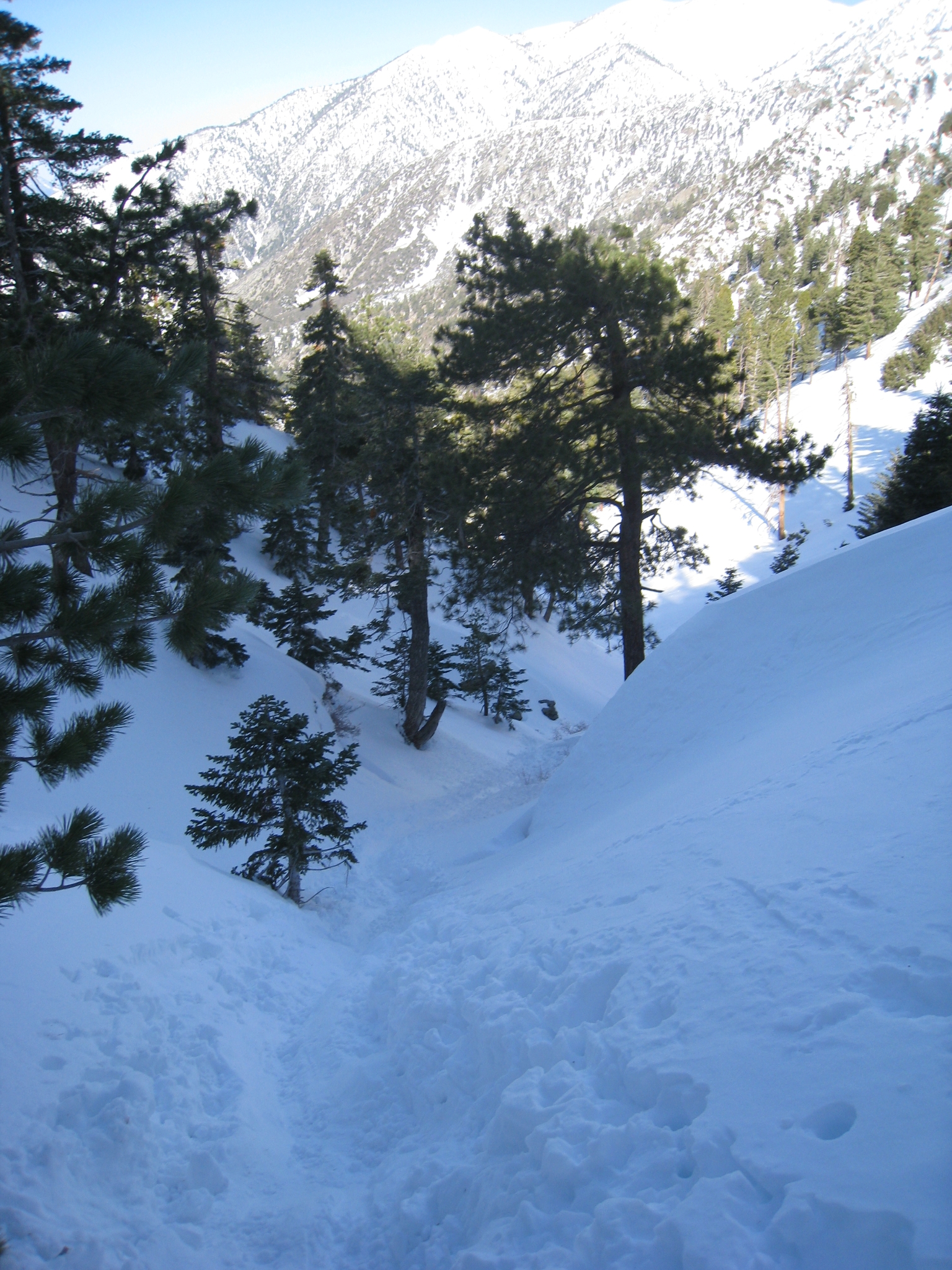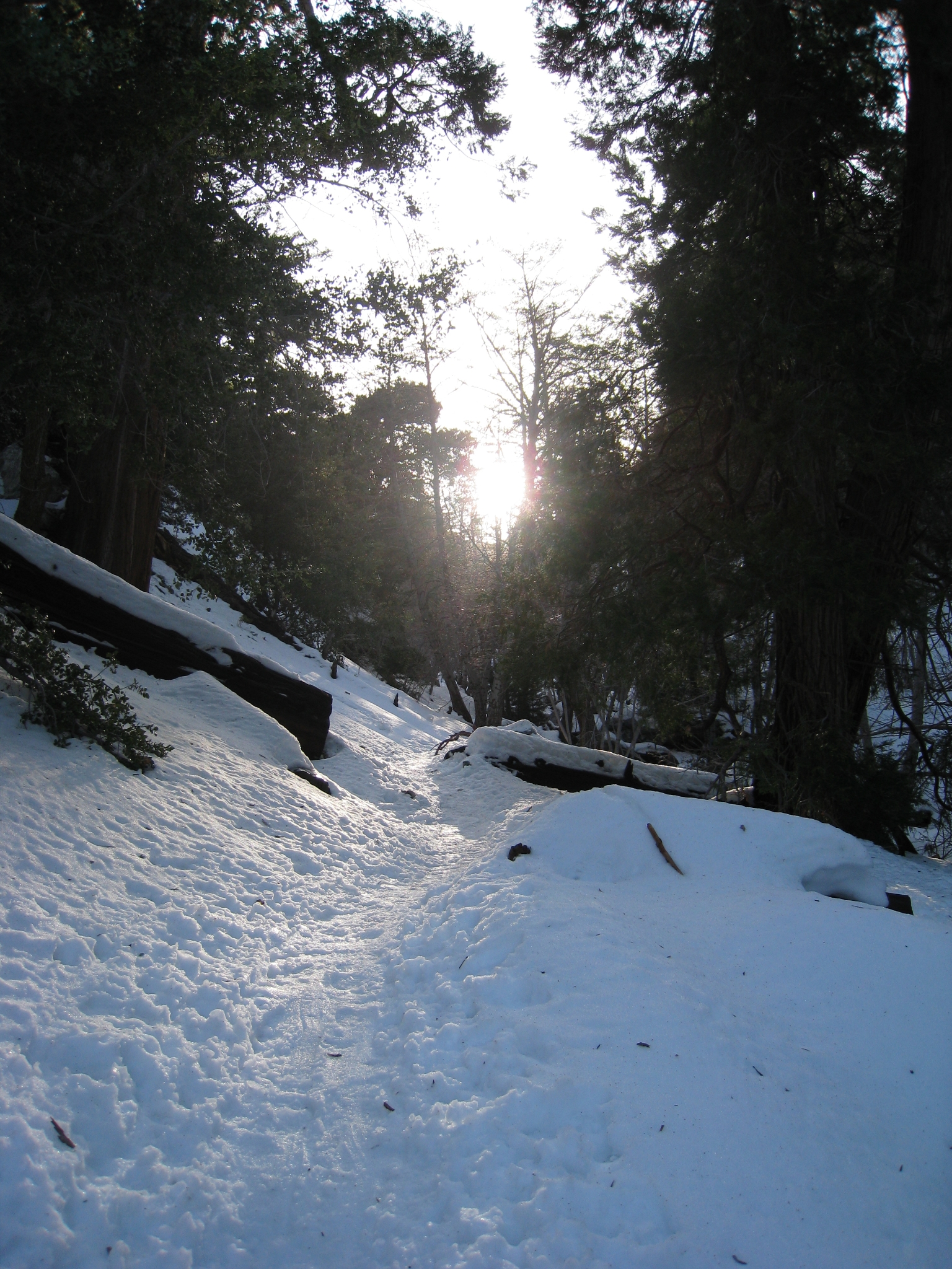 1 Well, I was looking to do another snowshoeing trip, but something a little bit more mellow this time around. Icehouse Canyon is evidently a popular snowshoeing spot in the Mt. Baldy area, so that sounded like a good fit. There had been about a foot of snow earlier in the week, so there should still be some good powder. But it was supposed to be really warm (expected to be in the 50s), and there were no more storms in the forecast, so I figured I better get up there before the snow ran out. Naturally the day turned out to be a little tougher than I anticipated. And to add to the challenge, I started a bit pre-fatigued from a having run a trail race the day before.
