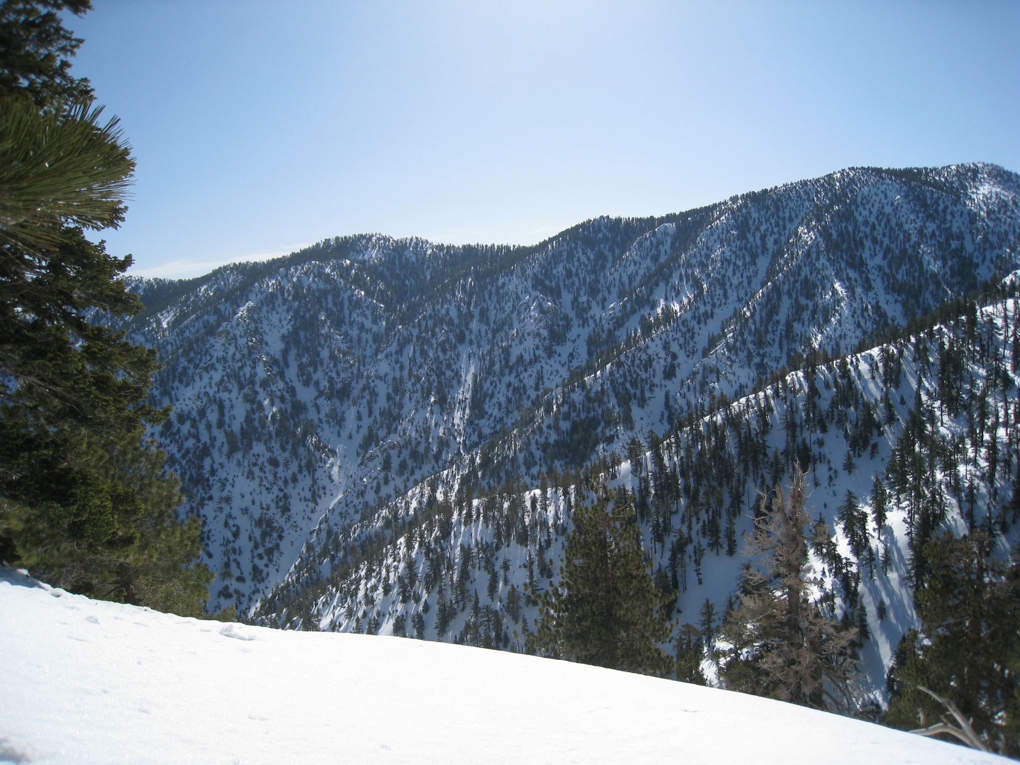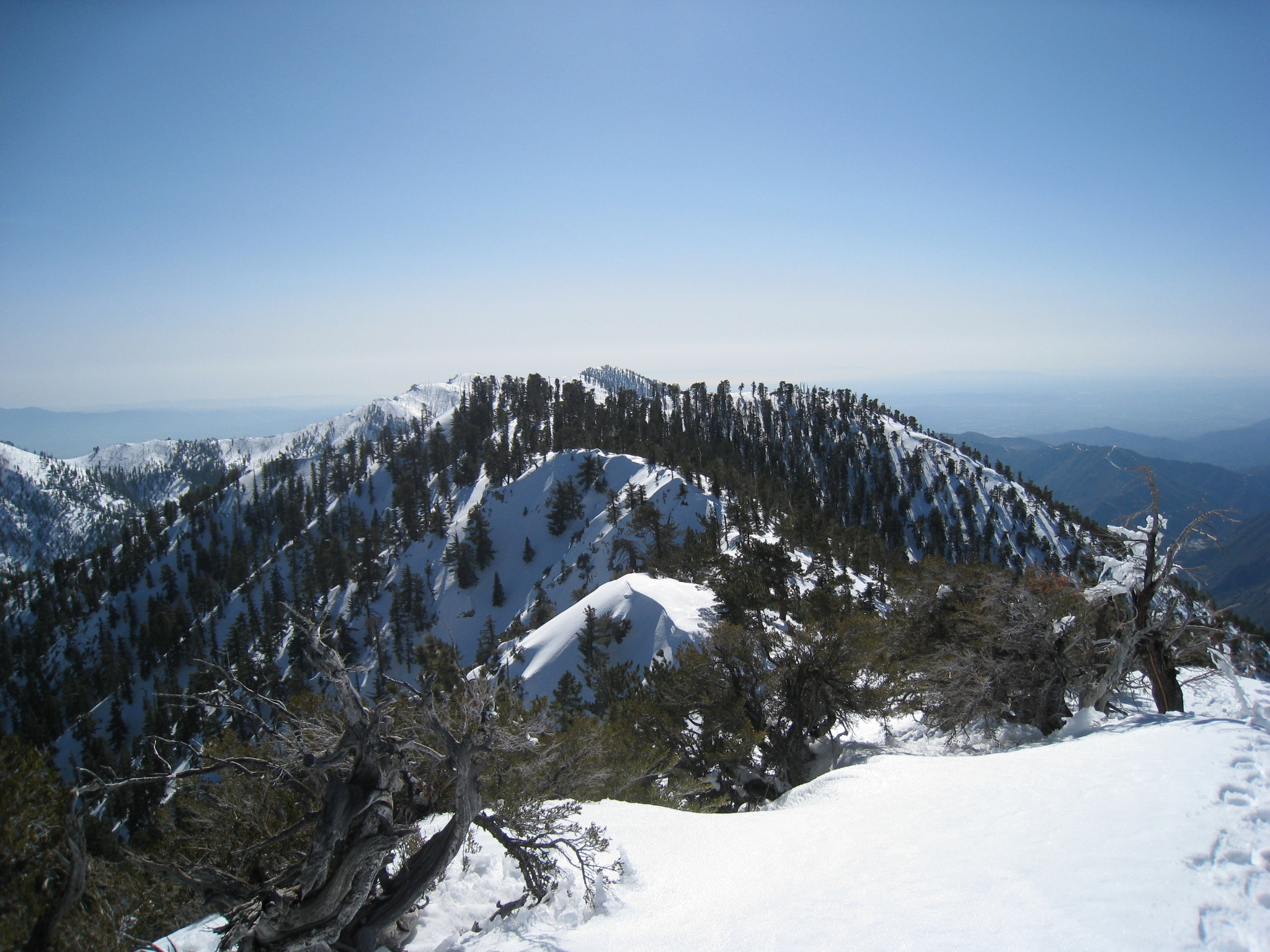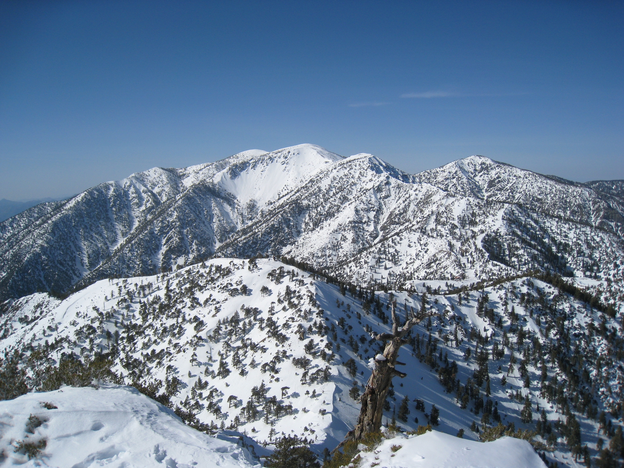 9 If I want to keep going, I have two options. Either South towards Cucamonga Peak or North towards Telegraph Peak. Originally, I had planned on Cucamonga Peak, but Telegraph Peak is the highest point in the Cucamonga Wilderness (higher than Cucamonga Peak by almost 200'), so I figured I might as well try to conquer that. Normally changing your itinerary is a no-no, but since I hadn't been able to tell anyone my itinerary anyway, no harm done.