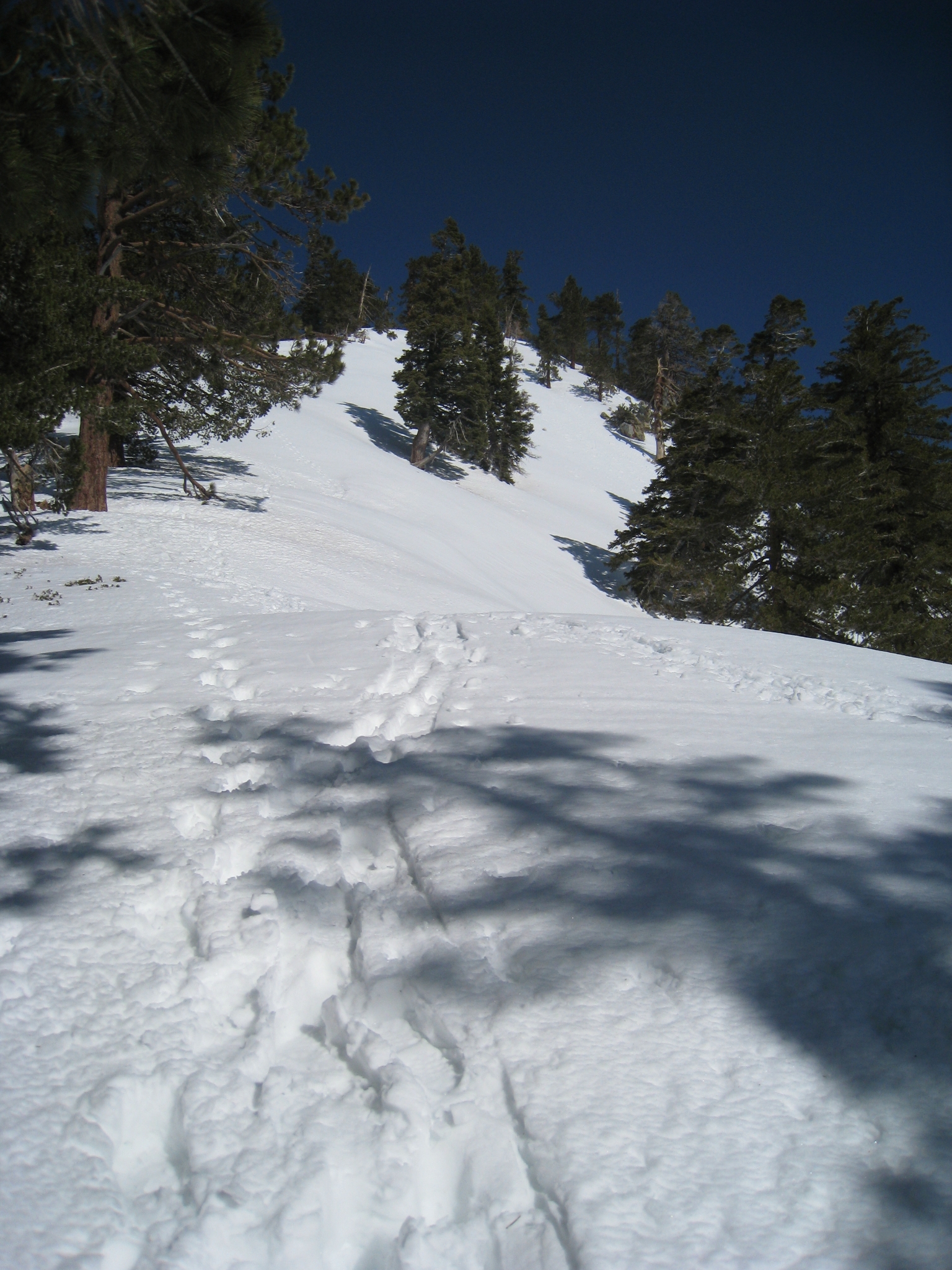 2/14/10 Another brutally tough, but fun, day in the snow. This time on the front-side of Mt. Baldy. Almost 14 miles and over 5000' of elevation gain. This time I actually saw a human though.