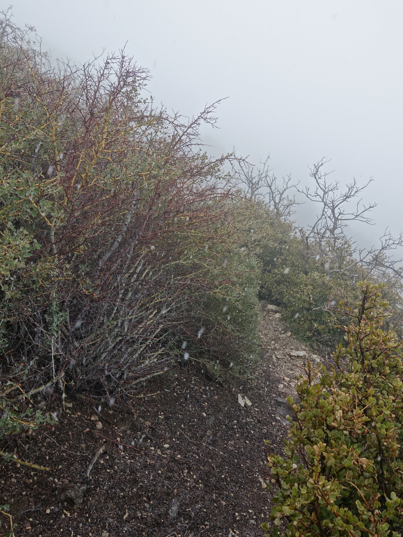 2 The snow starts to fall. I always find it odd to see snow amidst the chapparal.