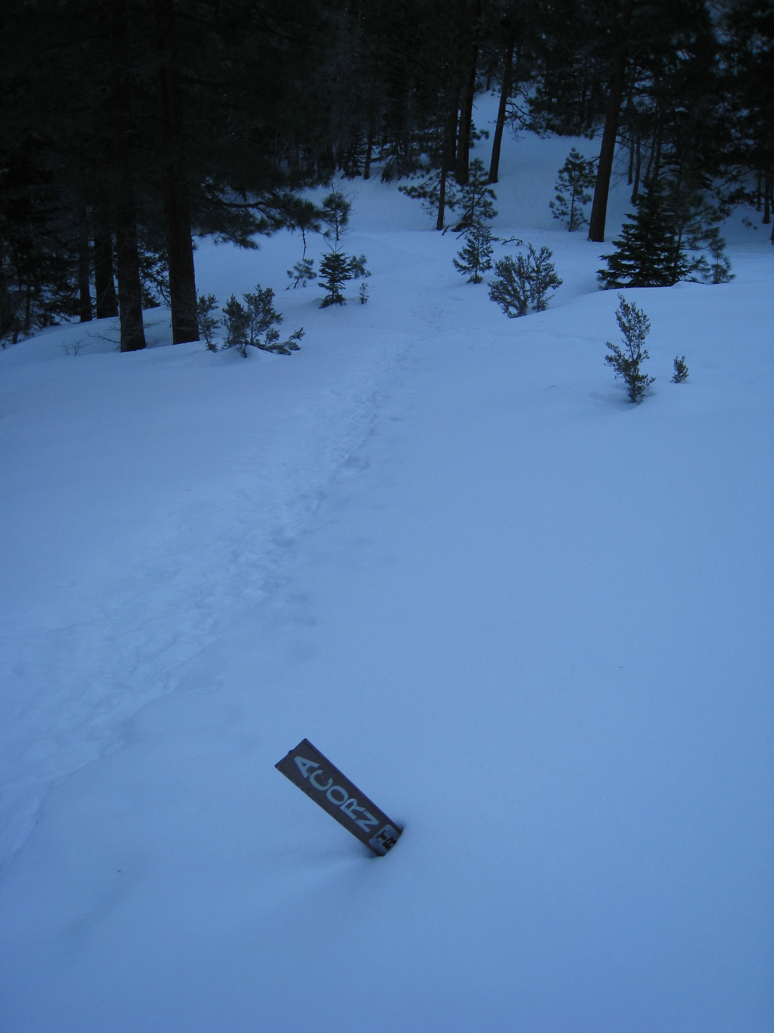 4 The same Acorn trailhead sign, only this time barely visible. Looks like I have someone's snowshoe tracks to follow for a while at least.