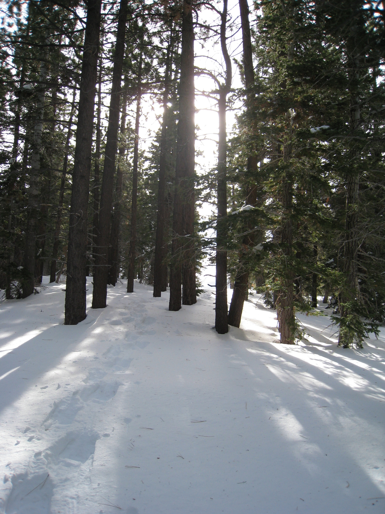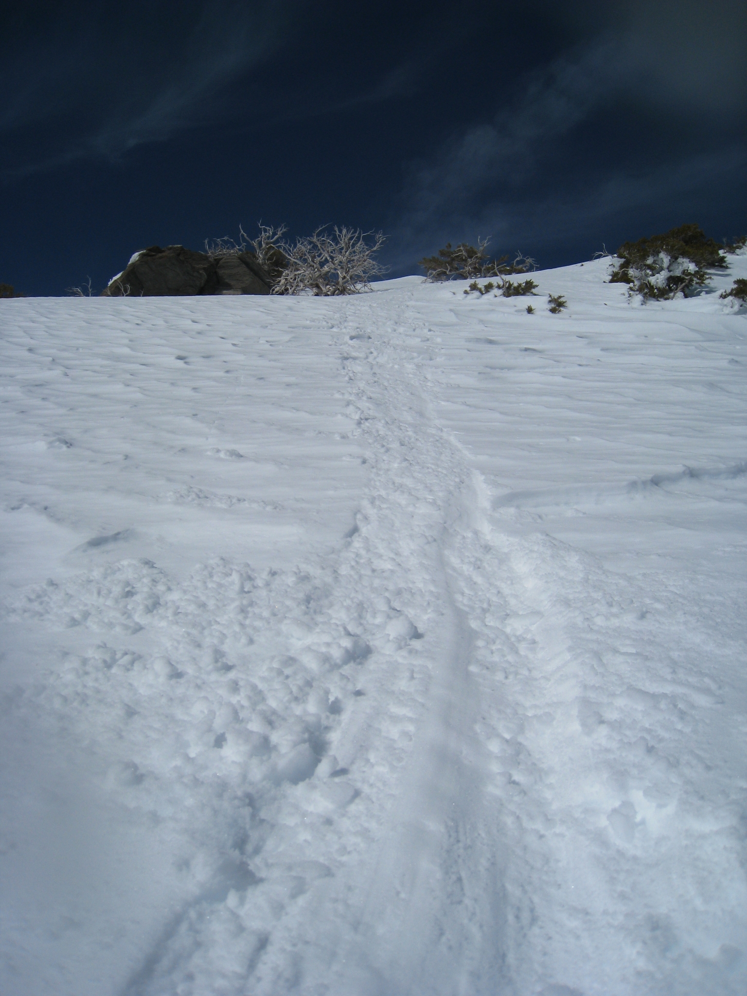 12 This picture gives some small idea of how steep this trail is. It is one of the hardest I have ever been on with no snow. With 5 feet of snow, it almost made me turn around. I have never come so close to calling it quits during one of my adventures then during this stretch. Now I know what an overweight chain smoker must feel like on a steep hike. I was dying.