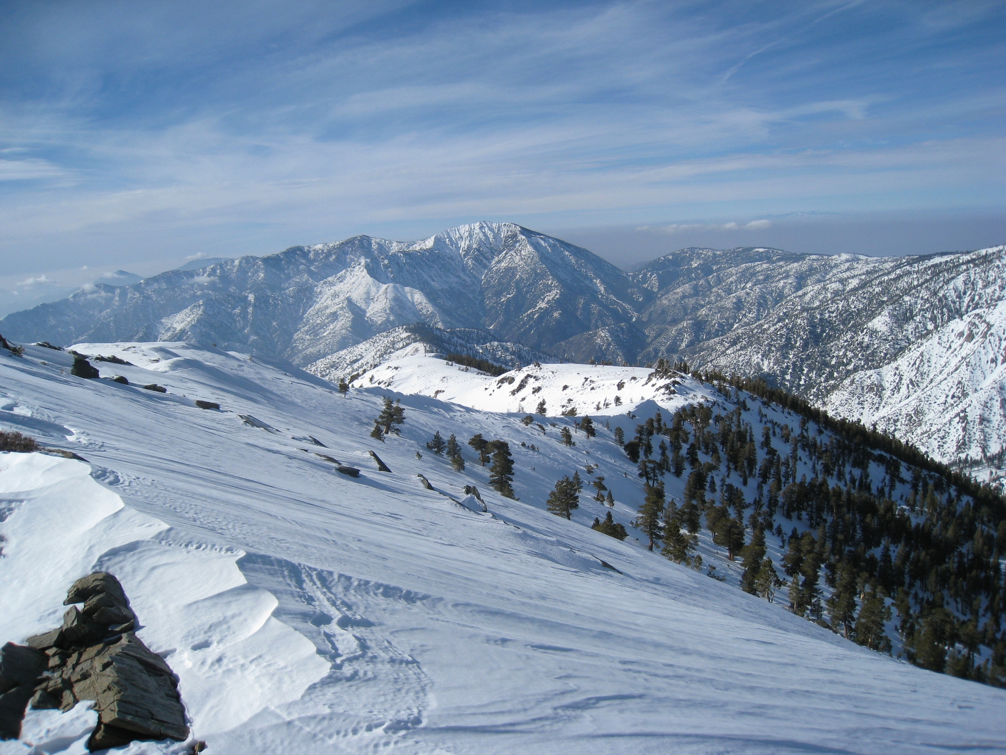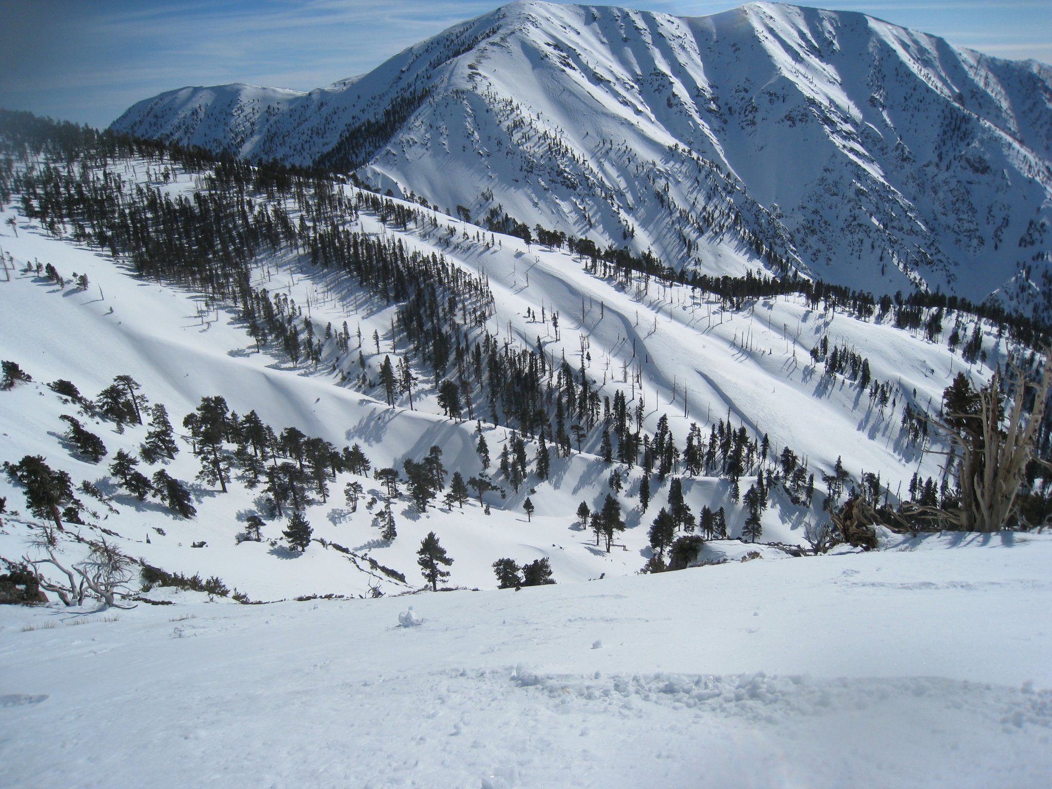 21 A view from my lunch spot with Mt. Baldy in the distance. Beats sitting inside a McDonalds. This is normally a very windy peak, you can see how the snow is almost blown away in places. But today the winds are fortunately quite calm.
