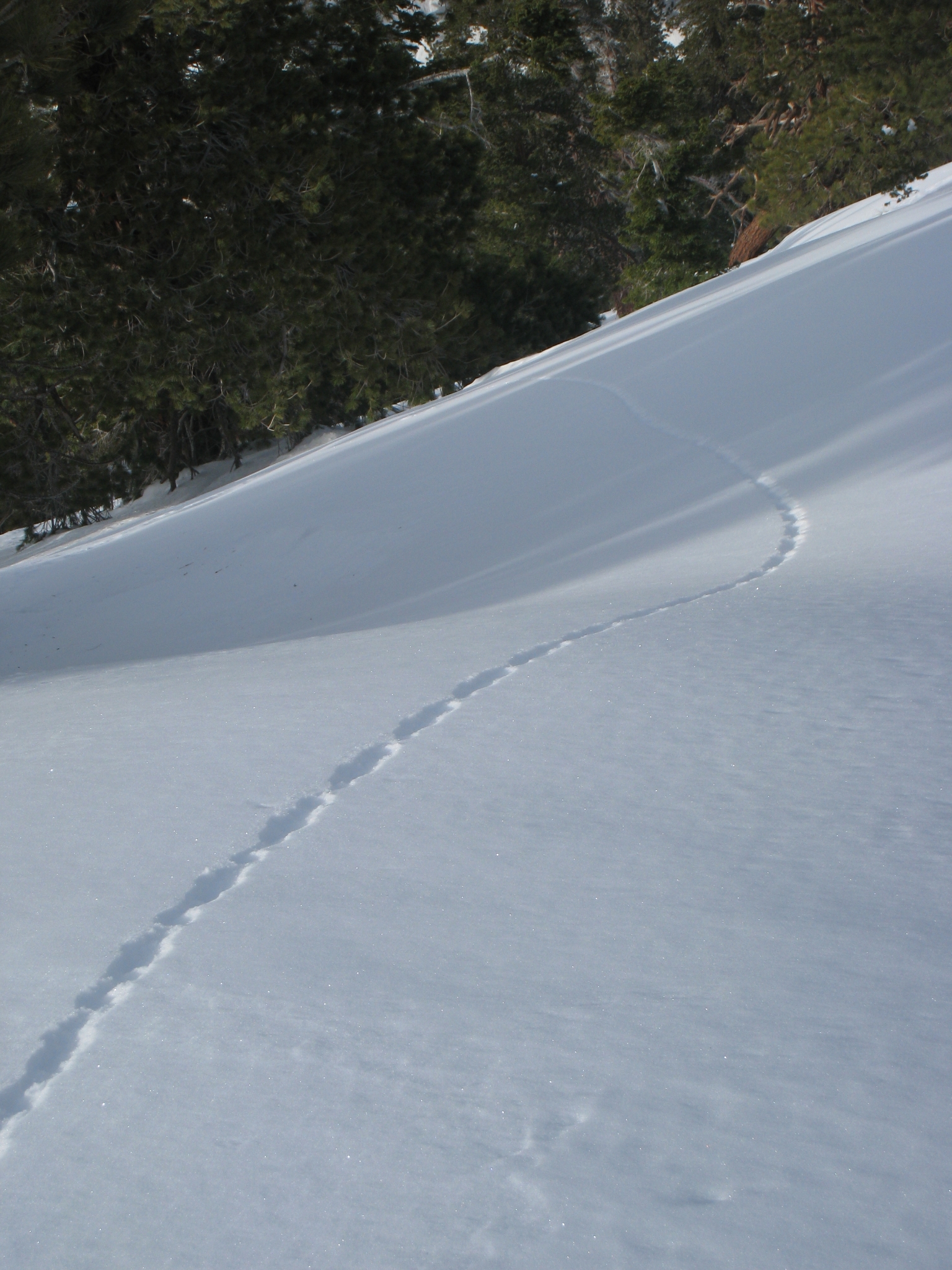 35 I kicked a little chunk of snow, which turned into a snowball, that rolled all the way down the hill making this little trail. Looked kind of cool.