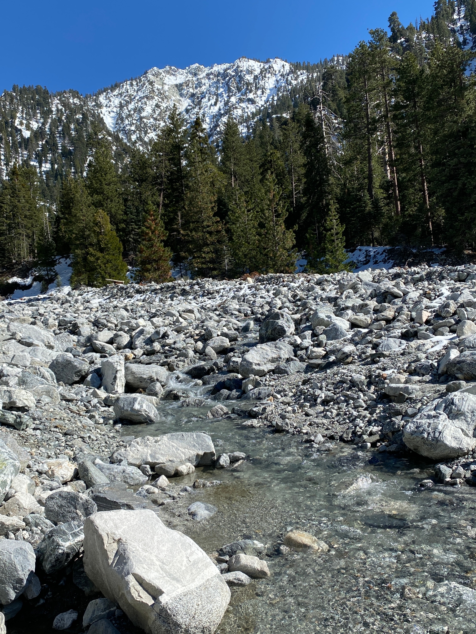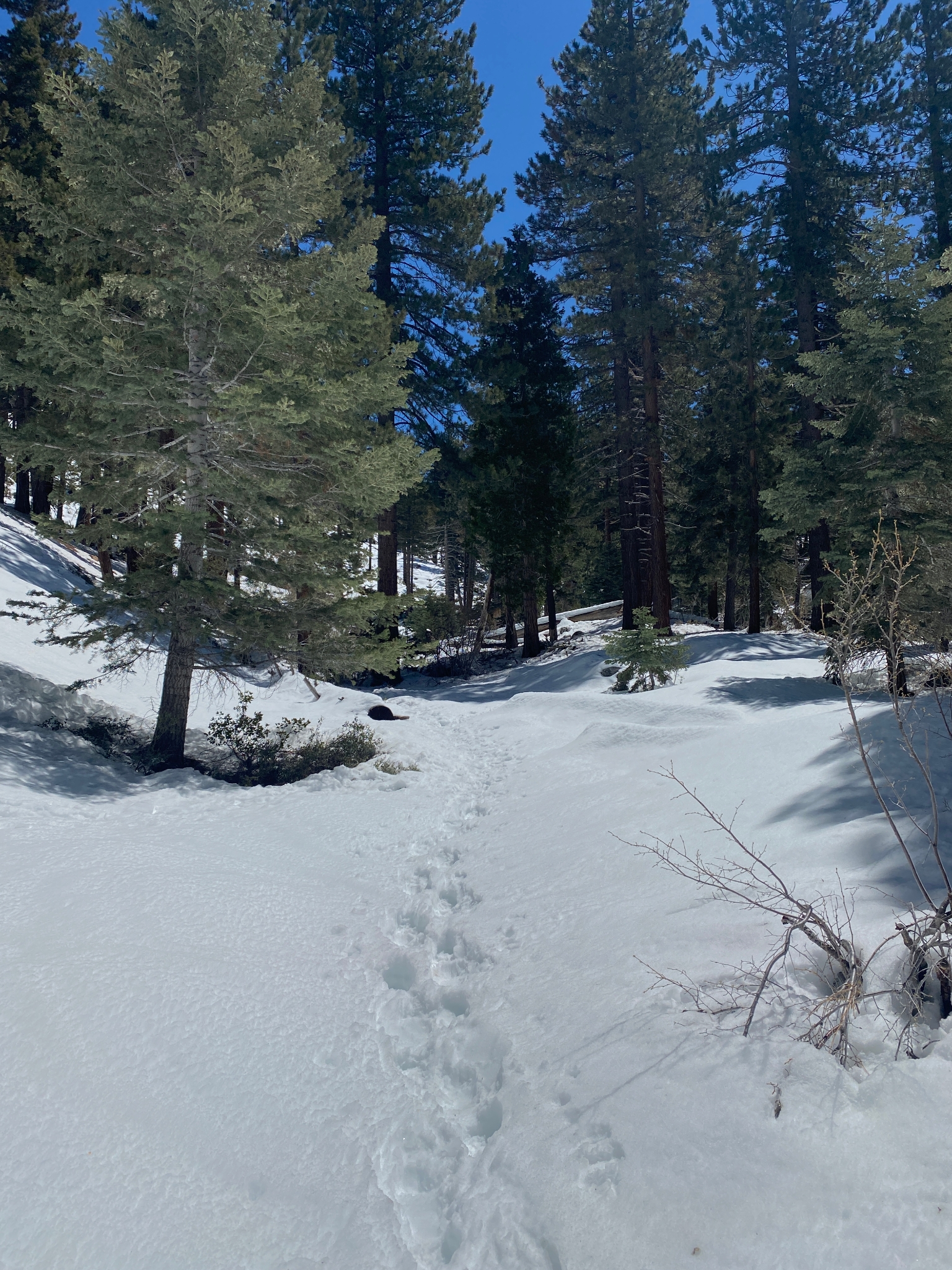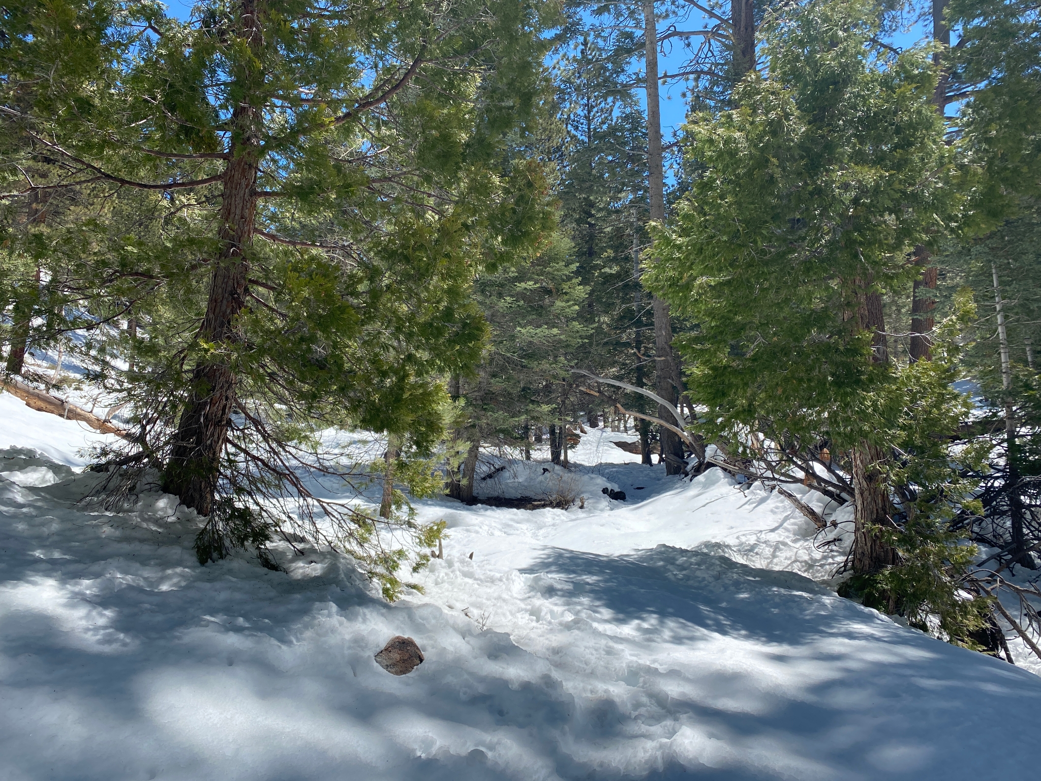 4/15/20 Part way up the Vivian Creek trail on San Gorgonio the week after a heavy snow. Tough snow conditions on an otherwise beautiful day, made for a grueling adventure. Thigh-high postholing at 9,000' eventually forced my turnaround.