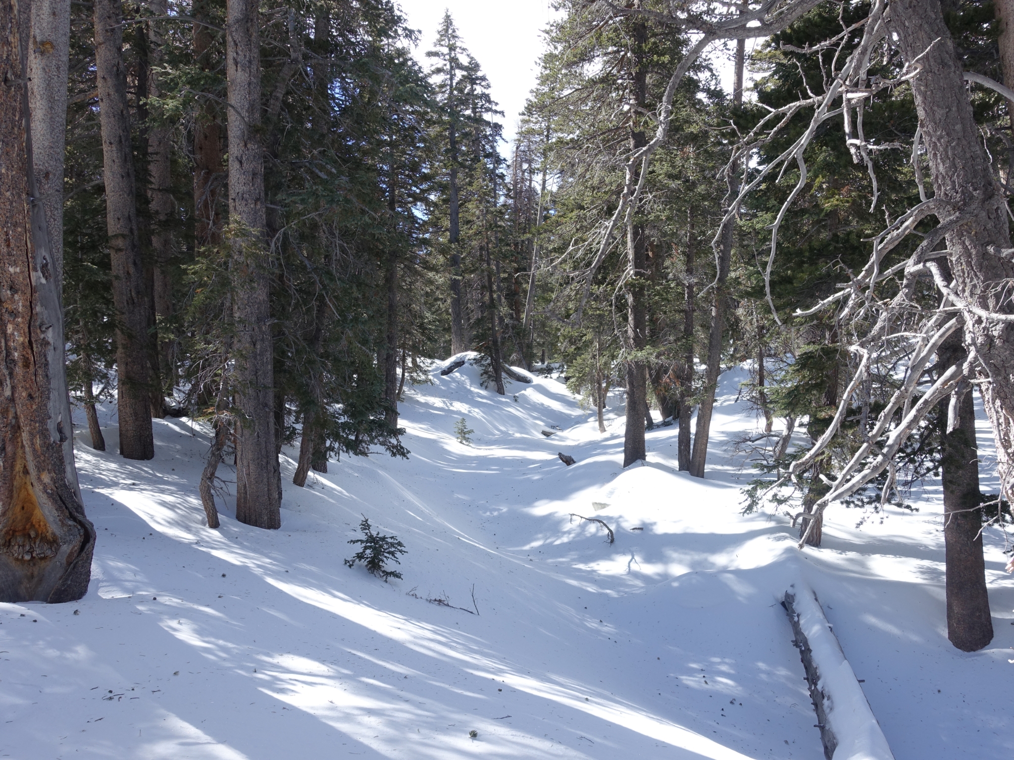 5 A typically deceiving picture. This is a steep climb out of Round Valley that is a common shortcut in the winter. It cuts almost a mile off the route by skipping the section out to Wellman Divide and heading straight uphill instead.